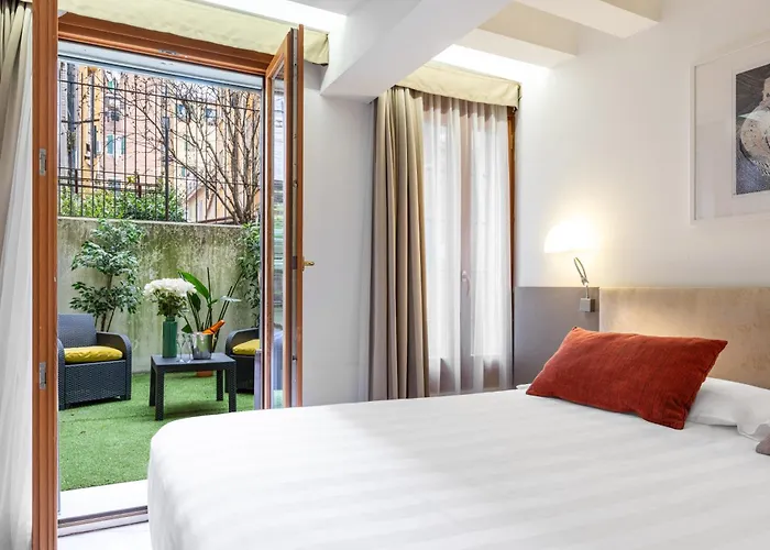 Offering baggage storage, Leone Hotel Venice lies in the shopping district of Venice, about a 20-minute walk from the Fortuny Palace and right near the historic canal Ponte delle Guglie Bridge. The hotel offers views of Cannaregio and provides Wi-Fi in public areas.
